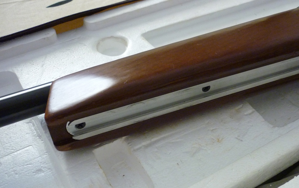 Esse trilho serve também para se adaptar outros acessórios como “champignon”, contra-pesos, etc. Retirando-se o conjunto cano e culatra, fixados por dois parafusos, verifica-se que há cavidades na coronha especialmente feitas para a colocação de pesos. O mesmo se verifica na parte posterior, acessível com a retirada da soleira.