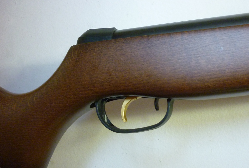 Vista lateral da Gamo 400 com o novo gatilho – um ótimo acessório que vale cada centavo.