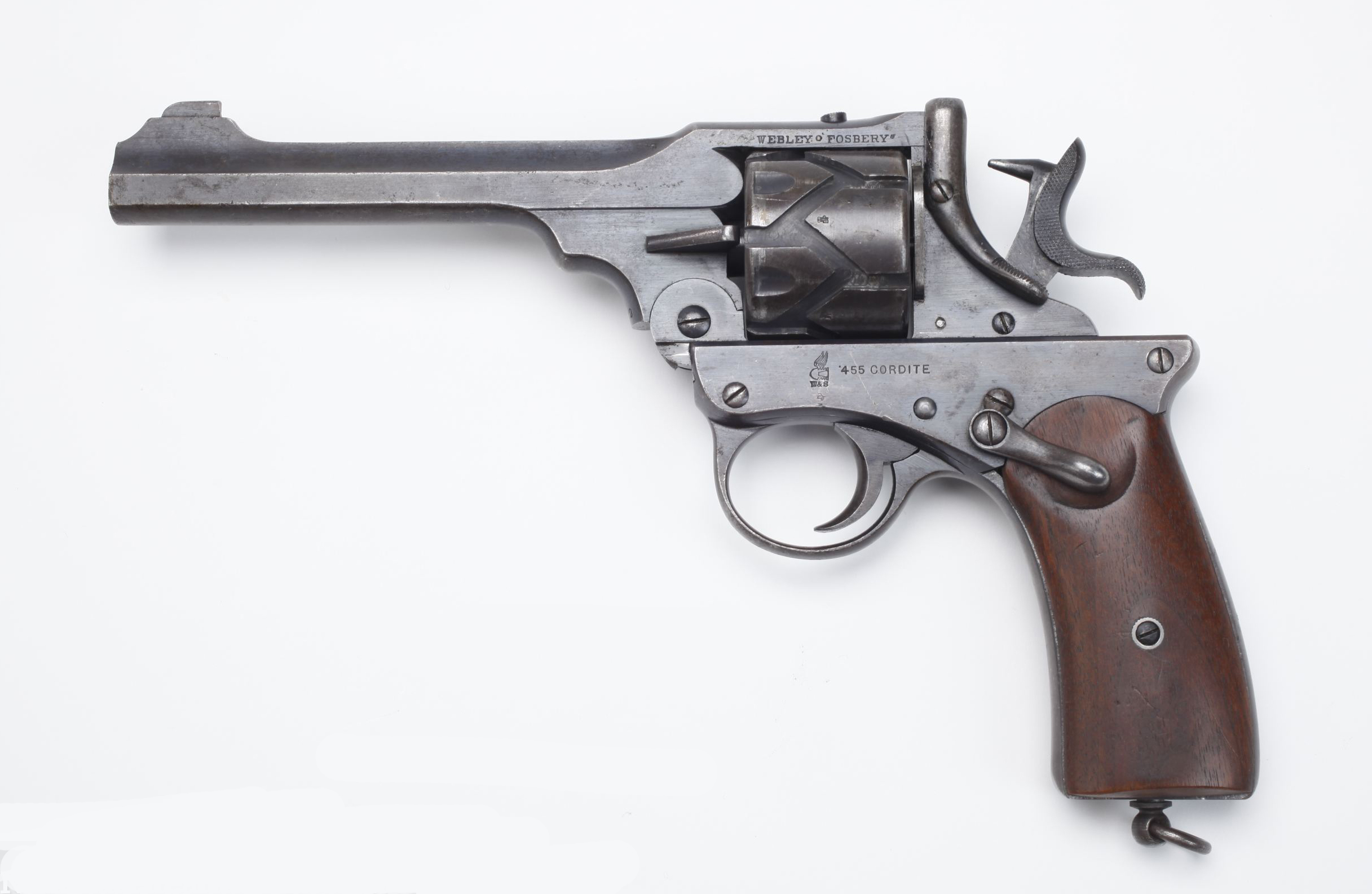 O revólver Webley-Fosbery, semi-automático, em calibre .455 Webley