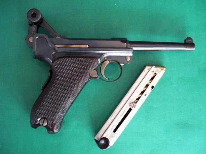 Tenho uma Luger modelo naval 1st Issue, marcada do estaleiro de Kiel, estou a um tempo tentando achar acessórios dela como a coronha, coldre, e outro carregador com os círculos na base. Quem sabe dou a sorte de encontrar os originais dela que estão perdidos em alguma coleção por aí…