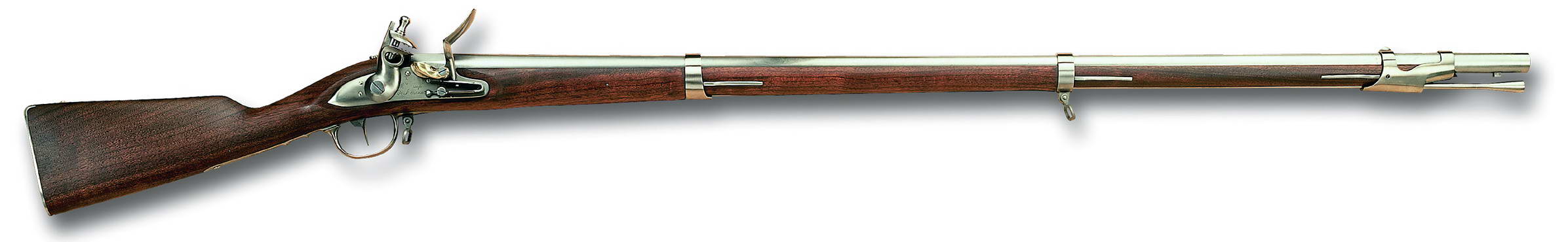 Um exemplar típico de mosquete francês, de 1777, em calibre 19 mm, modelo muito copiado pelos belgas e similar ao utilizado em larga escala pelo Exército Imperial Brasileiro