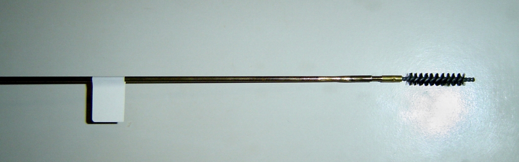 Com a arma fixa em uma bancada, introduzimos totalmente a escova da vareta pela boca do cano, até que esteja totalmente envolvida. Marca-se com uma caneta porosa o ponto de referência inicial própria vareta, bem junto à boca do cano. Na parte posterior da vareta, perto de seu cabo, coloca-se um pedaço de papel adesivo (etiqueta auto colante) formando uma espécie de bandeirola, bem na posição vertical. Começa-se então a introduzir a vareta pelo cano adentro, observando-se o giro da bandeira. Quando a mesma completar uma volta, marca-se na vareta outro ponto, junto à boca do cano e retira-se a vareta.
