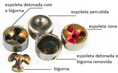 Como já explicado, a chamada bigorna é a protuberância contra a qual ocorre o esmagamento do fulminato quando a espoleta é atingida pelo percussor.