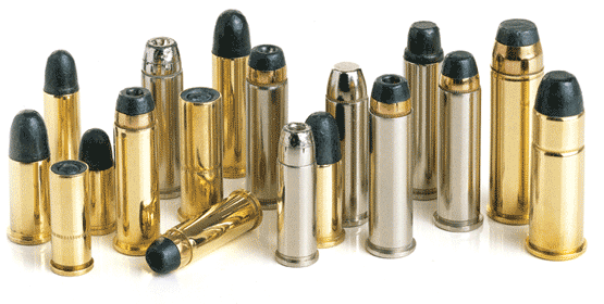 Na foto à direita, do catálogo do fabricante CBC, vemos diversos cartuchos para revólver com diversas opções de projéteis tais como os feitos inteiramente de chumbo (ogivais, semi canto-vivo e canto vivo) e as pontas semi-encamizadas.