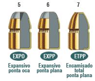 Há ainda as opção de pontas encamizadas expansivas, com maior poder de deformação, como as dotadas de rebaixos sem deixar o chumbo aparente, como mostra a figura ao lado.