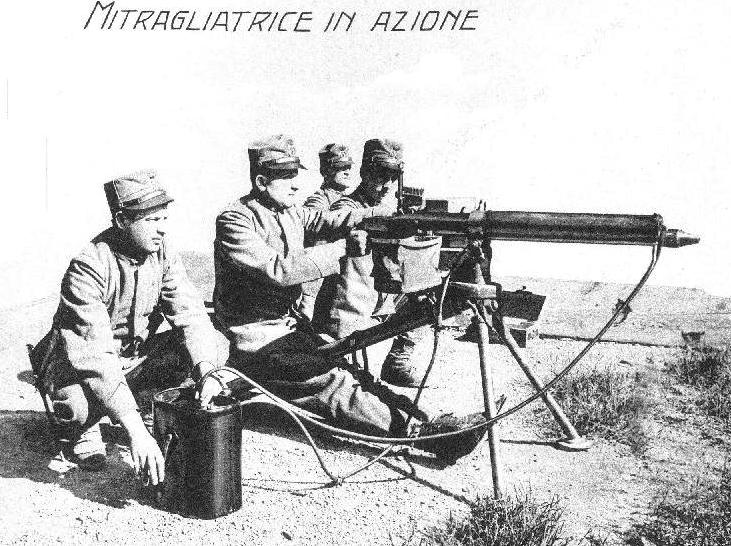 Metralhadoras e Submetralhadoras na I e II Grandes Guerras » Mitragliatrice_Perino_in_azione