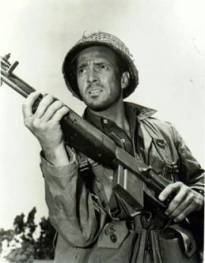 À esquerda, o soldado Kirby com seu B.A.R., na série de TV Combat!