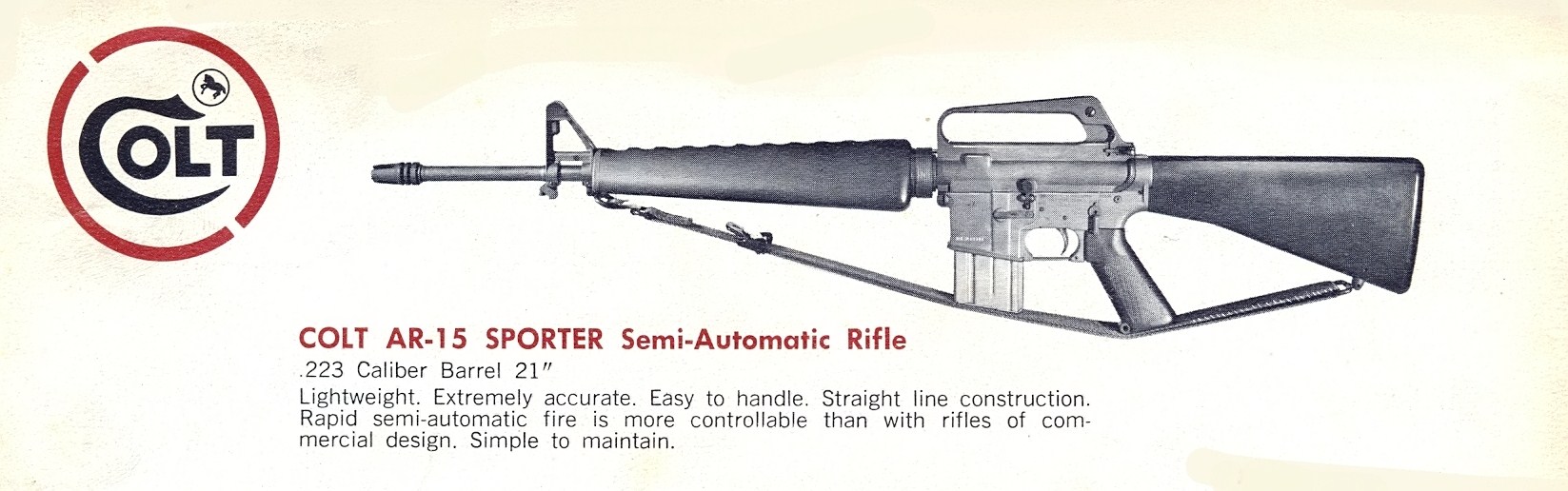 Reprodução de um catálogo da Colt Firearms de 1966, com o AR-15 Sporter à venda
