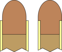 Diferença entre um cartucho normal e um com sistema “heeled bullet”, tal como os cartuchos .22 rimfire