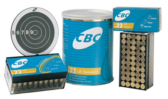 Acima, alguns dos produtos da CBC na linha de cartuchos calibre .22