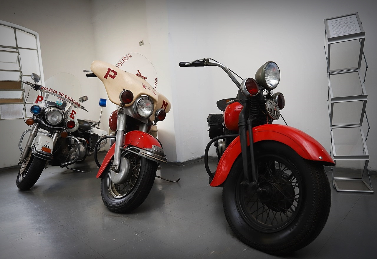 Motos Harley Davidson do acervo (da esquerda para direita): modelo 1993 (doação do 2º Batalhão de Polícia do Exército), Modelo 1969 e Modelo 1936.