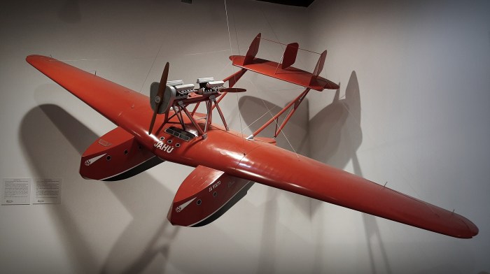 Modelo do hidroavião Savoia Marchetti SM55 “JAHÚ”, usado na heróica travessia do Oceano Atlântico em 1927, sob comando de João Ribeiro de Barros, tendo como copiloto o tenente da Força Pública paulista, João Negrão (1901-1978).