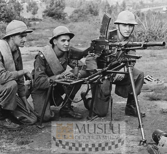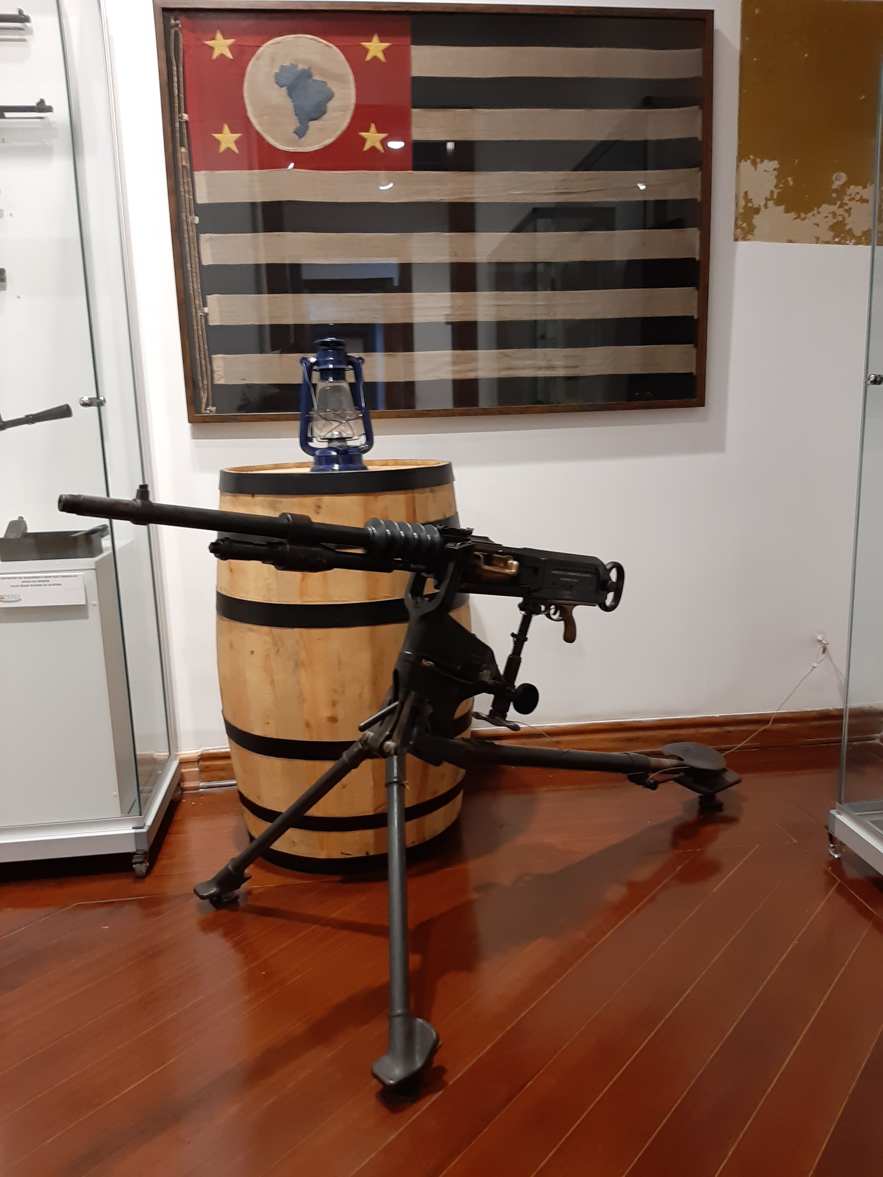 Metralhadora Hotchkiss Modelo 1914, calibre 7 x 57 Mauser, um dos exemplares adquiridos logo após a I Guerra Mundial, como influência da 2ª Missão Francesa (1919-1924).