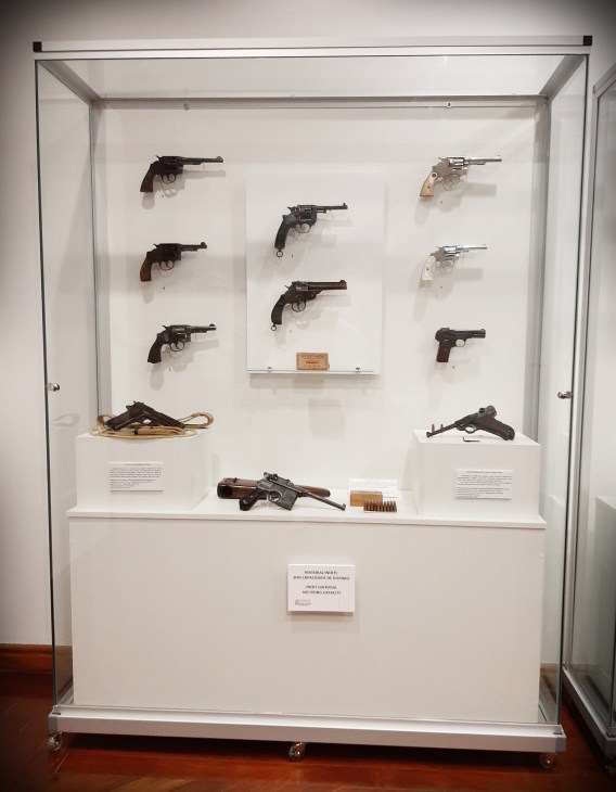 Mostruário exibindo as principais armas curtas usadas durante a Revolução Constitucionalista de 1932.
