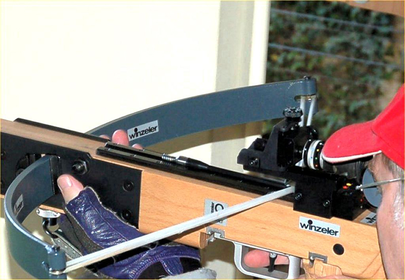 Modelo recente de fabricação Winzeler dotado de gatilho eletrônico, nível de bolha iluminado, arco em fibra de carbono e cordas de kevlar. A coronha possui a peça de apoio da face regulada em altura. O site da Winzeler é http://www.winzeler.ch/de/